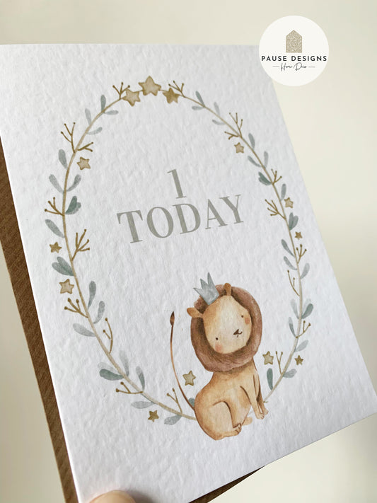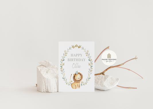 Customised Age Lion Safari Animal Birthday Greetings Card