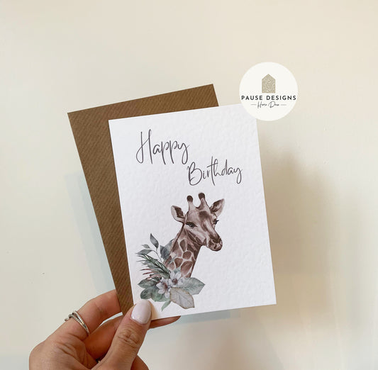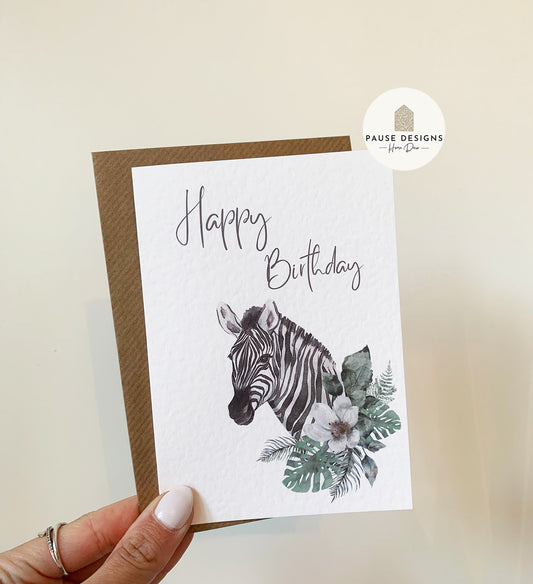 Personalised Baby Name Happy Birthday Safari Animal Greetings Card