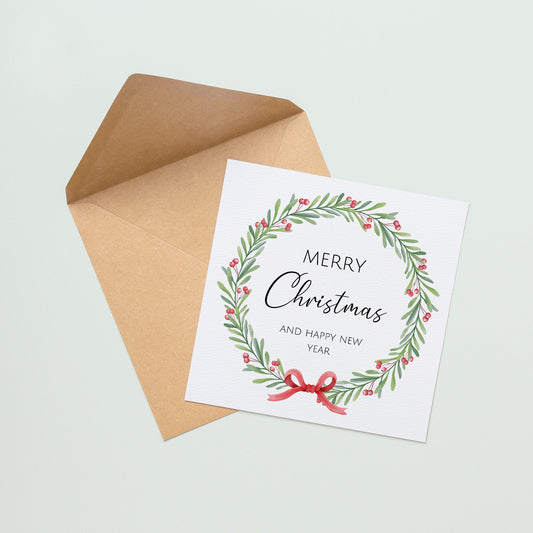 Merry Christmas Watercolour Wreath Card Luxury Christmas Card for Husband & Wife Unique Holiday Greeting Gift