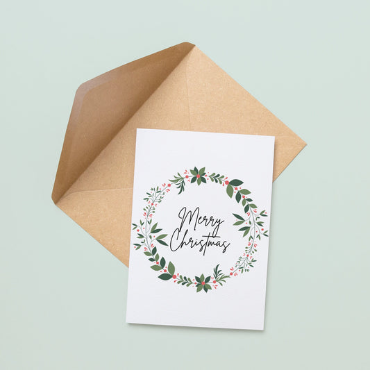 Merry Christmas Foliage Berry Wreath Christmas Card, Christmas Wreath, Cards For Her, Luxury Christmas Cards