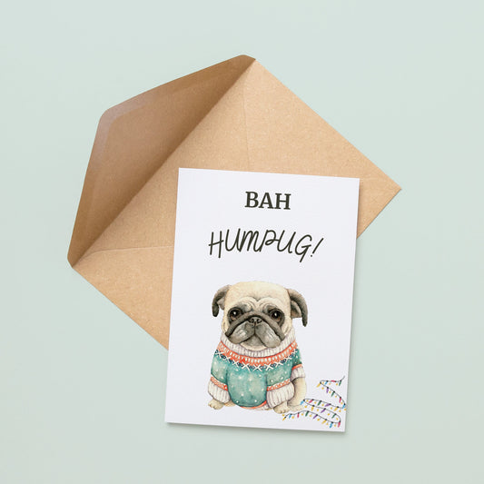 Bah Hum Pug Dog Christmas Card | Christmas Card From The Dog | Christmas Card For Him | A6 Card | Cute Christmas Card | Pug Christmas Card