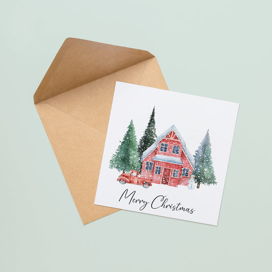 Merry Christmas Watercolour Winter Lodge Home Card Luxury Christmas Card for Wife & Husband Festive Holiday Greeting Card