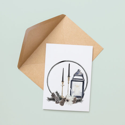 Monochrome Christmas Lantern & Candles Christmas Card | Christmas Card Wife | Christmas Card Husband | A6 Card | Modern Christmas Card |