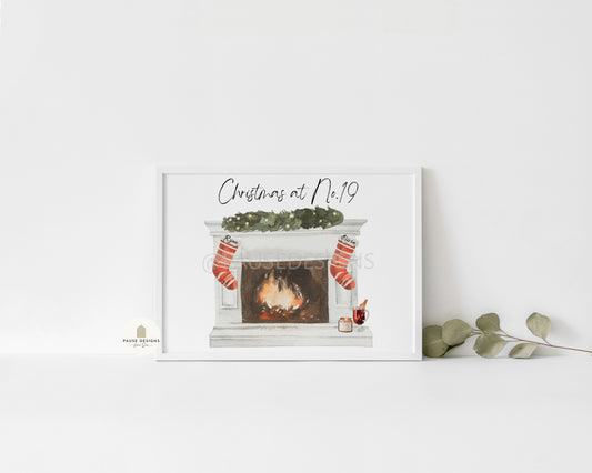 Personalised Family Christmas Fireplace Stockings Wall Art Print | Unframed Print