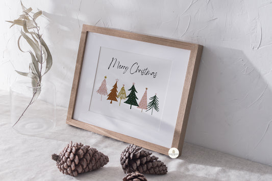 Merry Christmas Colourful Christmas Trees Wall Art Print | Unframed Prints