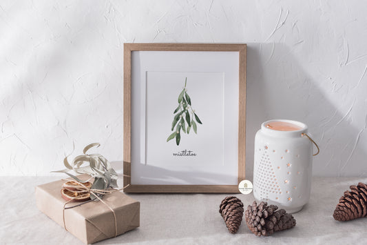 Watercolour Mistletoe Festive Typography Wall Art Print | Unframed Print