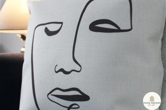 Abstract Face One Line Drawing Luxury Linen Style Cushion Cover
