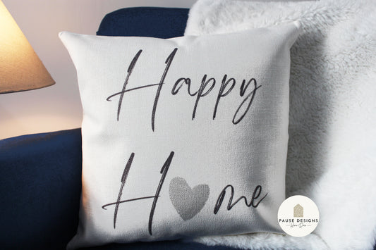 Happy Home Grey Heart Luxury Linen Style Cushion Cover