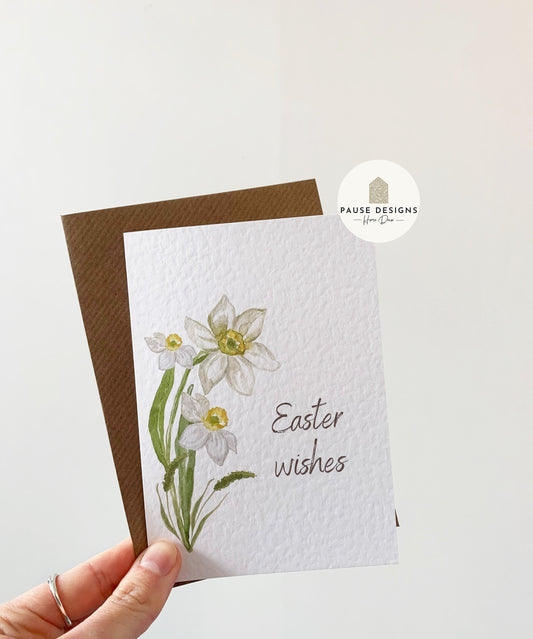 Watercolour Daffodil Easter Wishes Greetings Card | Spring Daffodils Card | Cute Cards | Easter Cards | Happy Easter