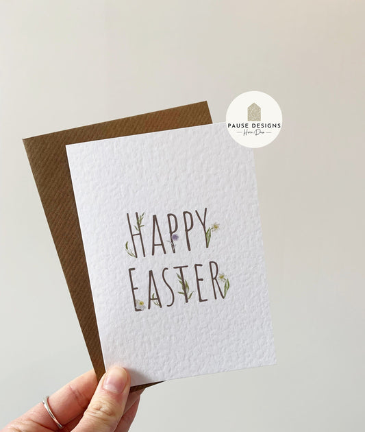 Pretty Floral Lettering Happy Easter Greetings Card | Spring Daffodils Card | Cute Cards | Easter Cards