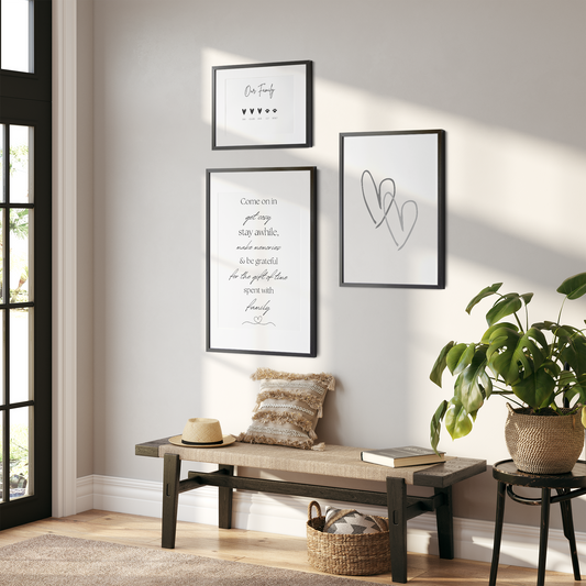 Triple Grey Scribble Hearts Wall Art Print | Unframed Print
