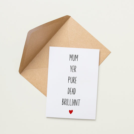 Scottish Mum Yer Pure Dead Brilliant Mother's Day Card | Cards For Mum | Mothers Day Card | Cute Cards | Minimalist Cards | Scottish Cards
