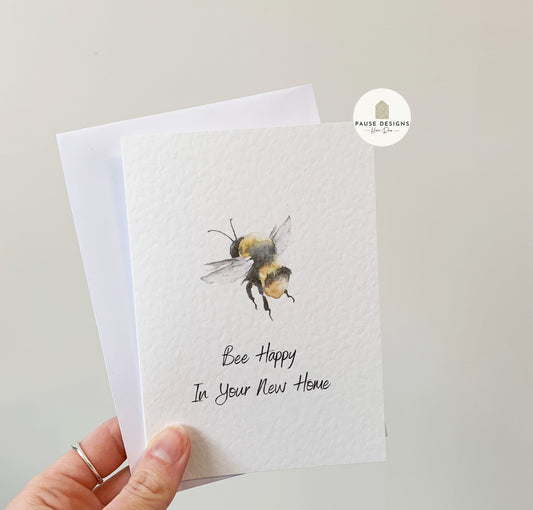 Bee Happy In Your New Home Watercolour Bee Greeting Card