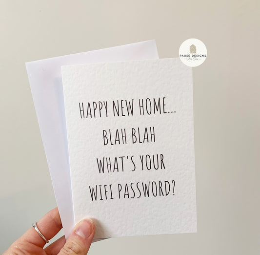 Happy New Home, What's Your Wifi Funny New Home Greeting Card