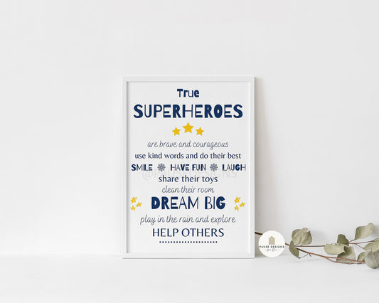 True Superheroes Are Brave Motivational Wall Art Print | Unframed Print
