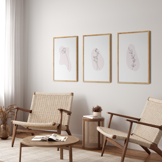Set of 3 Abstract Flower Line Drawing Pink/Taupe Wall Art Print | Unframed Print