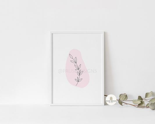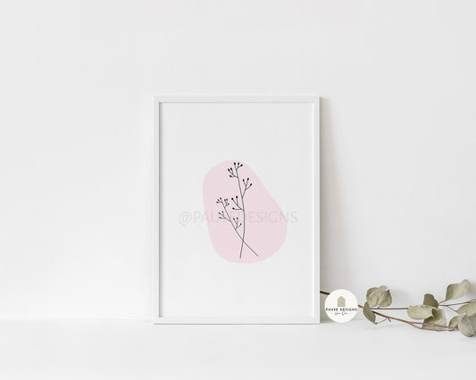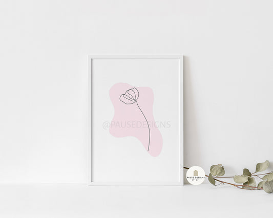 Abstract Flower Line Drawing Pink/Taupe Wall Art Print | Unframed Print