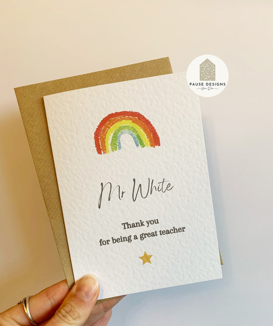 Personalised Rainbow Thanks For Being A Great Teacher Greetings Card