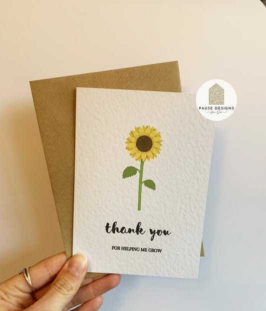 Thank You For Helping Me Grow Sunflower Greetings Card