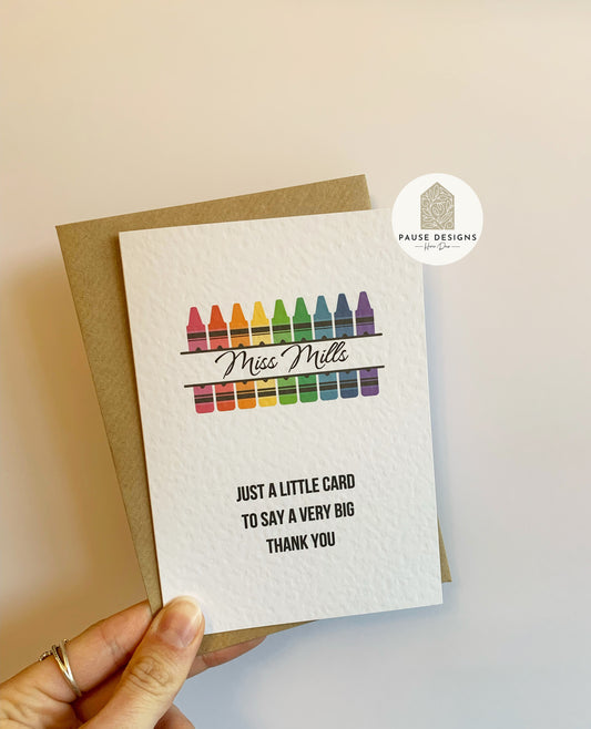 Personalised Crayon Thank You Teacher Greetings Card