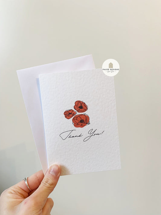 Thank You Typography Red Poppy Greetings Card