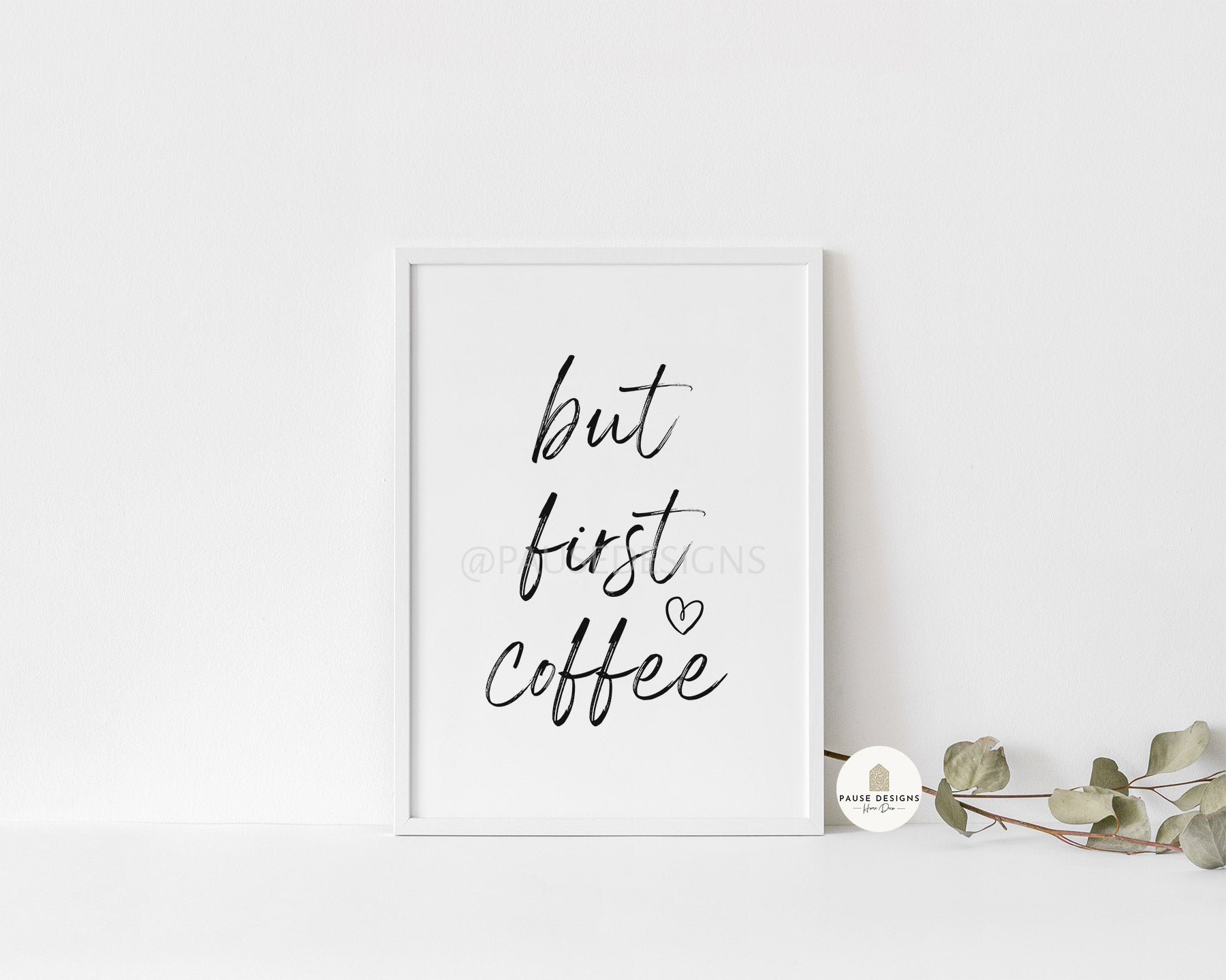 Our But First Coffee Heart Print brings a minimalist décor style to your home for coffee lovers.