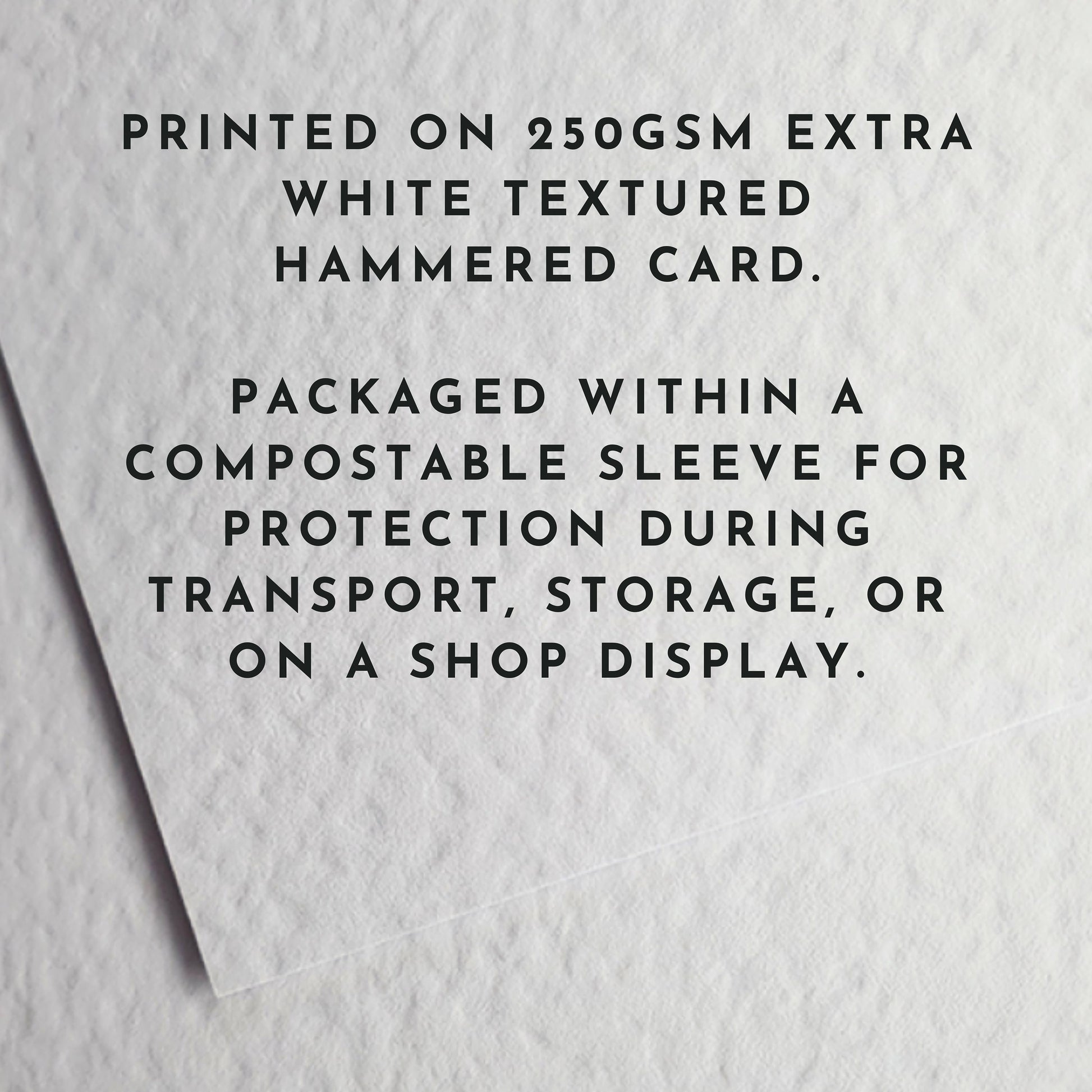 • All cards are packaged in a sleeve and delivered within a hard backed envelope for protection.