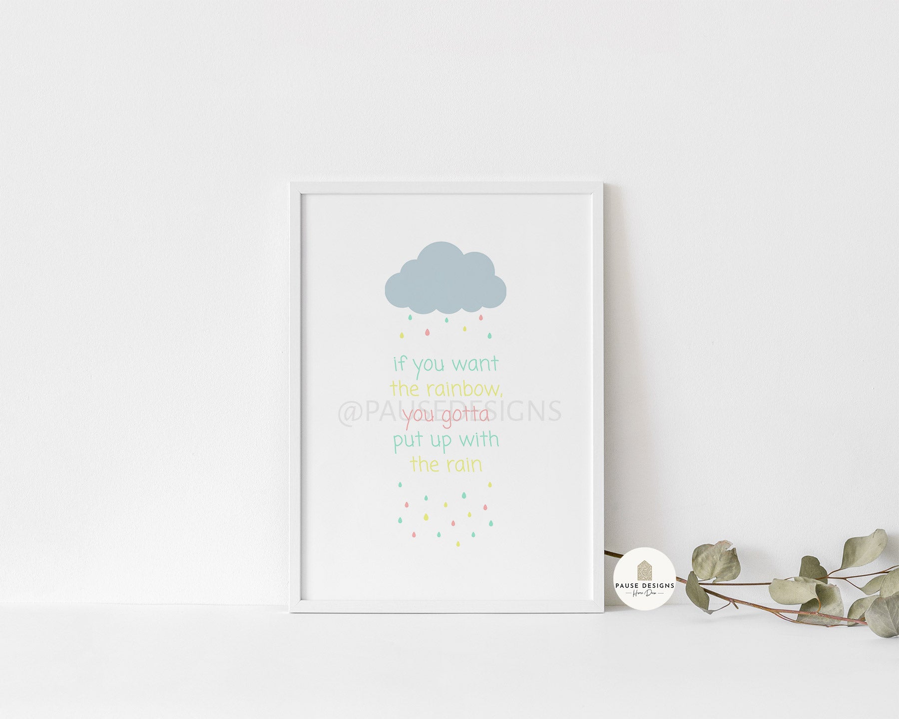 Our If You Want A Rainbow, You Gotta Put Up With The Rain Motivational Print brings a minimalist décor style to your home with an element of life and colour.