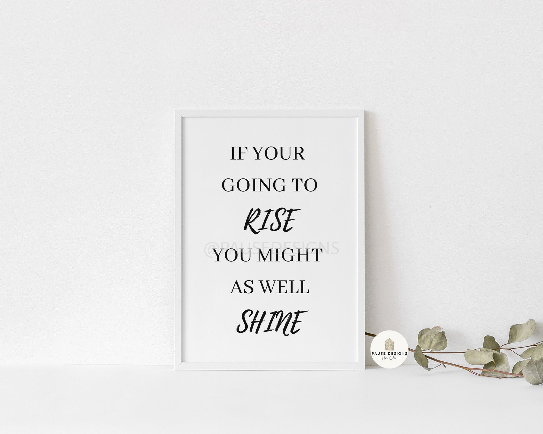 Our If Your Going To Rise, You Might As Well Shine Typography Print brings a minimalist décor style to your home with an element of motivation.