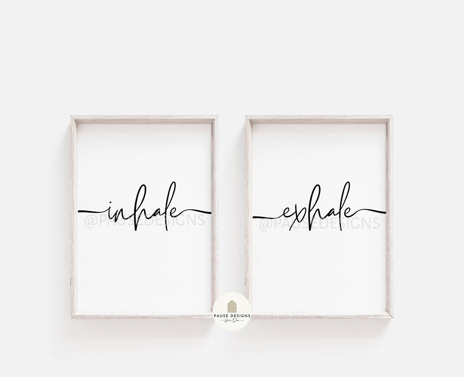 Inhale, Exhale Set of 2 Typography Wall Art Prints | Unframed Prints