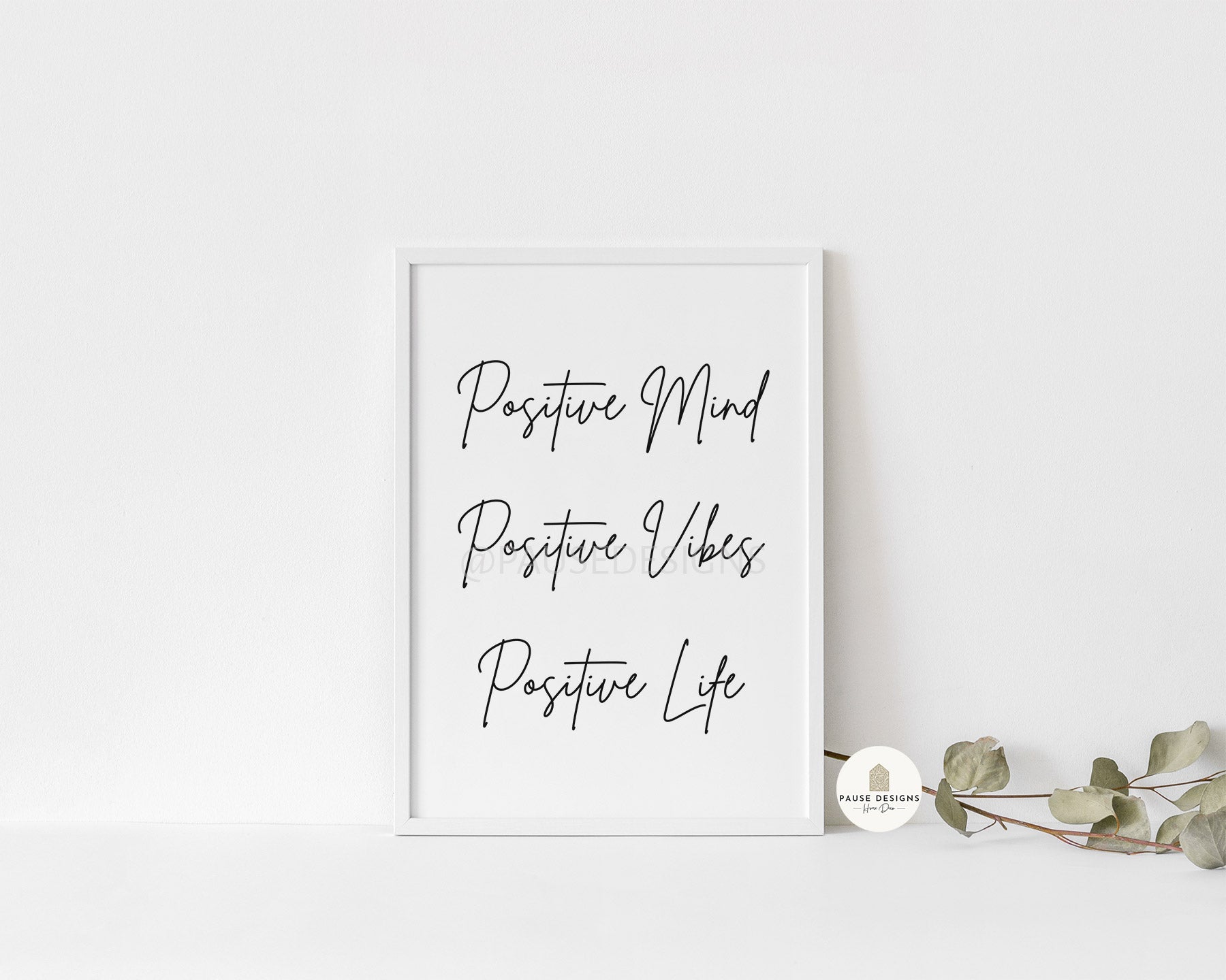 Positive Mind, Positive Vibes, Positive Life Typography Wall Art Print | Unframed Print